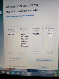 HP probook processore AMD 2. 70 GHZ APU Radeon 8Gb ram ssd 120 gb. batteria ottima durata completo di alimentatore 120 w Funzionante con segni d'uso e piccole imperfezioni.