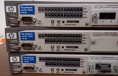 Perfettamente funzionanti causa passaggio Gbit; vendo switch unmanaged HP PROCURVE 2324 - J818A in varie configurazioni (con TX/RX J4853A).