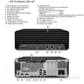 Vendo pc desktop HP PRODESK 400 G7 I5 10500 con hard disk da 256 SSD e 8 GB RAM DDR4, possibilità di upgrade anche a 16Gb. Windows 11 Pro e OFFICE 2024
