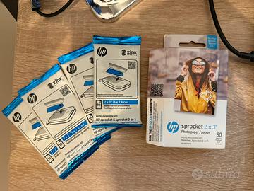 HP Sprocket Stampante fotografica istantanea portatile 5x7.6 cm (Nero) Stampa le immagini su carta adesiva ZINK dai tuoi dispositivi iOS e Android + HP Sprocket Carta fotografica adesiva ZINK Premium 5x7.6 cm (40 fogli)