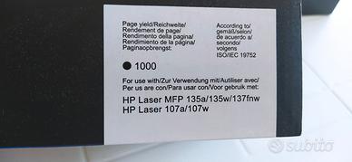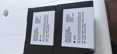 Per errato acquisto vendo queste 2 cartucce per stampante HP laser MFP 135a/135w/137fnw e HP laser 107a/ 107w. Una delle 2 é stata aperta per prova, l'altra completamente sigillata. Preferisco solo consegna a mano. Daniele.