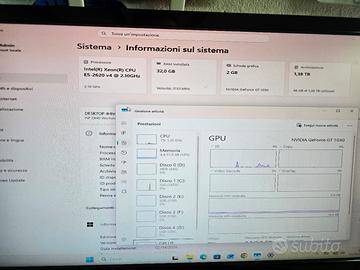 Specifiche tecniche Modello HP Z840: - Processore Intel Xeon E5-2620 V4 12 Cores 16Threads 2.6Ghz. possible aggiungere un secondo CPU. - Ram installata 32GB DDR4 - Scheda video dedicata Nvidia GeForce GT 1030 - Hard Disk installato SSD 512Gb NVME+ 1Tb meccanici SAS. si puo aggiungere 1 Tb senza costo aggiuntivo. - Sistema operativo Windows 11 Pro 64bit - Condizioni esterne Grado A, perfetto in ogni sua parte - Condizioni funzionali Articolo perfettamente funzionante, non presenta difetti hardware o software, Computer ricondizionato - Ingombro e peso 203x525x444 mm - 21,1 kg