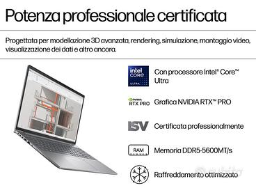- Connettività: Scheda wireless Intel® Wi-Fi 7 BE201 (2x2) e Bluetooth® 5.4, vPro®
