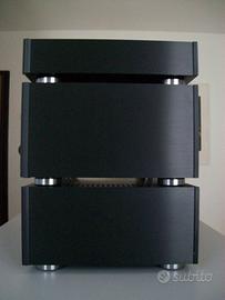 Valuto la vendita ad appassionato con competenze Htpc che può apprezzare l'unicità e l'esclusività di questo trittico composto da 3 contenitori completamente in alluminio. Esemplare unico al mondo sviluppato su precise specifiche. Case n.1 slim per alloggiare lettore DVD/BLU-RAY e 2 HDD, case n.2 Htpc con TFT 7" full hd e telecomando (case per contenere tutti classici componenti MB, PSU etc. Il case n.3 contiene 4 amplificatori digitali T-amp 8 canali 90watt e 2 alimentori tutto già assemblato con terminali Rca e speaker (banana e forcella). La particolarità del trittico è la profondità di solo 30cm. Prezzo interessante da concordare. Astenersi con proposte assurde se non consapevoli del valore del prodotto.