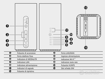 HUAWEI 4G Router 3 Prime (LTE Cat19 up to 1.6Gbps) modello B818-263. Per reti FWA con schede sim. Contenuto scatola: router, alimentatore, cavo ethernet, istruzioni.