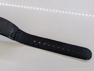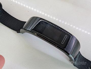 Vendesi fitness tracker Huawei Band 4 Pro. Il cinturino originale in silicone è stato sostituito con uno in Nylon Nato.
