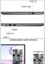 Questo huawei matebook 14 è pronto per tutte le esigenze di condivisione e visualizzazione con più porte universali; avrai un jack audio da 3,5 mm, USB 3.0 e 2.0, HDMI e una porta USB-c per la condivisione e la ricarica.