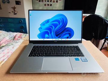 Vendo laptop Huawei MateBook D 15 in colorazione Mystic Silver. Il computer è perfettamente funzionante, fluido e aggiornato a Windows 11. Processore: Intel Core i3. Schermo: FullView da 15 pollici con cornici sottilissime. Stato Batteria: Buono (capacità attuale 31.7 Wh su 41.4 Wh originali, solo 182 cicli di ricarica). Porte: USB-C (ricarica), HDMI, 3x USB-A, Jack audio. Extra: Webcam a scomparsa nella tastiera, sensore d'impronta digitale nel tasto accensione e Huawei Share. Condizioni: Ottime, scocca integra con minimi segni di usura (piccola rientranza sul coperchio, vedi foto 1, che non influisce sul display). Ideale per studio, ufficio e streaming. Design sottile e leggerissimo.