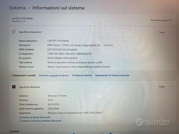 Processore: AMD Ryzen 7 3700U con Radeon Vega Mobile Graphics (2.30 GHz)