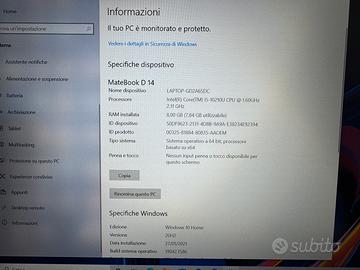 MateBook D14 Huawei. Pari al nuovo, utilizzato pochissimo, letteralmente acceso una decina di volte. Batteria immacolata.