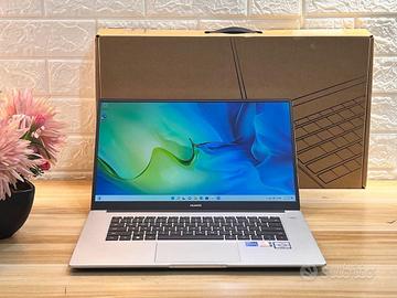 Huawei Matebook D15. SPECIFICHE: Tipo di prodotto: Computer portatile, Fattore di forma: Clamshell. Famiglia processore: AMD Ryzen 5, Modello del processore: 3500U, Frequenza del processore: 2,1 GHz. Dimensioni schermo: 39,6 cm (15.6"), Tipologia HD: Full HD, Risoluzione del display: 1920 x 1080 Pixel. RAM installata: 8 GB, Tipo di RAM: DDR4-SDRAM. Capacità totale di archiviazione: 256 GB, Supporto di memoria: SSD. Scheda grafica integrata. Sistema operativo incluso: Windows 10 Home. Colore del prodotto: Argento