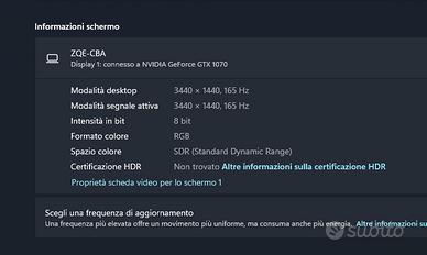 Vendo monitor ultrawide curvo da 21:9 di Huawei MateView GT34 con risoluzione 3440 x 1440 da 165hz. Il monitor è 10bit se impostato a 144hz, altrimenti 8bit a 165hz. È anche HDR. Il monitor ha 1 DisplayPort e 2 HDMI Ottimo gaming o per lavoro. Non spedisco.