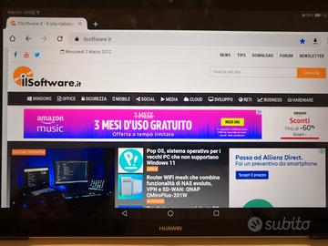 Eccellente tablet perfettamente funzionante ed in ottime condizioni (pari al nuovo) completo di scatola originale CARATTERISTICHE: Colore: Space Gray Dimensioni e peso: 17 x 0.7 x 25 cm; 500 grammi Display IPS da 10,8", Risoluzione: 2560x1600, 280PPI Processore Huawei Kirin 960, Octa-core 4×A73 (2.4 GHz) + 4×A53 (1.8 GHz) GPU: Mali-G71 MP8 Android 9 + EMUI 9.1, 4GB LPDDR4 RAM + 64 GB ROM Memoria espandibile: MicroSD fino a 256GB Fotocamera Posteriore: 13 MP con auto focus, Frontale: 8 MP Sensore impronte digitali laterale con gesture Batteria: 7500 mAh, ricarica rapida (3 ore per ricarica completa) Nano-SIM, 4G LTE, GPS/A-GPS/GLONASS Wi-Fi Direct (802.11 a/b/g/n/ac, 2.4 & 5GHz) Bluetooth: 4.2 USB Type-C CONFEZIONE CONTENENTE: penna con 4096 livelli di pressione, caricabatteria 9V Cavo USB Type-C, Adattatore da USB Type-C a jack audio 3,5mm Strumento di rimozione SIM