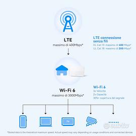 Vendo in perfette condizioni il Router HUAWEI 4G+ CPE 5, B636, Router SIM LTE, Cat 7+, DL 400Mbps/UL 200Mbps, Wi-Fi 6 AX3000, 1 LAN/WAN+3 LAN, Copertura del Segnale di Livello Industriale, in garanzia (fornirò documento di acquisto).