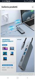 【100 W-PD docking】 Il docking USB-C di questo hub può collegare un alimentatore con una potenza di uscita fino a 100 W per caricare il laptop ad alta velocità e allo stesso tempo utilizzare tutte le altre funzioni dell'hub. Assicurati che la connessione USB-C del dispositivo supporti la funzione di ricarica.