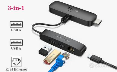 Adattatore Ethernet micro USB 3 in 1, hub OTG con 2 porte USB e 1 porta RJ45 per Fire TV Stick, Raspberry Pi Zero, Google Chromecast Ultra e TiVo Stream 4K, nero