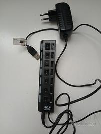 Hub USB 2.0 usato con sette porte, ideale per espandere le connessioni del tuo PC. Ogni porta è dotata di un interruttore individuale per un controllo personalizzato.