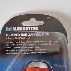 Vendo HUB USB 2.0 Hi-Speed a 4 porte di marca Manhattan, modello Flex Hub. Ancora nella confezione blisterata originale, perfetto per espandere le porte USB di PC fisso o portatile.