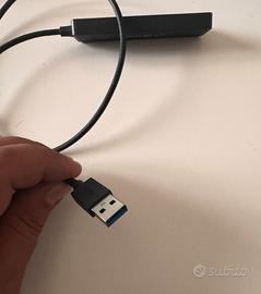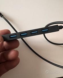 Vendo hub USB 3.0 marca Aceele, con 4 porte USB 3.0 ad alta velocità e un ingresso Type-C per alimentazione aggiuntiva.