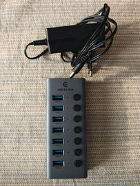 Hub USB 3.0 alluminio 7 porte doppia alimentazione