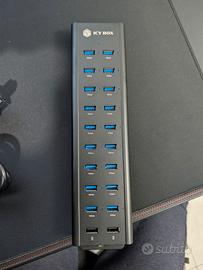 hub usb 18 porte più 2 per ricarica dispositivi completo di tutto si può montare su postazioni in profilati di alluminio. utile per chi ha molte periferiche per il sim racing