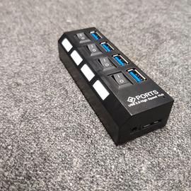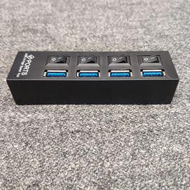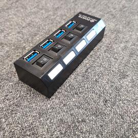 Vendo HUB Usb a 4 porte, un oggetto indispensabile nella tua casa o nel tuo ufficio. Comodo, leggero, ergonomico può essere appeso al muro con del semplice nastro biadesivo. Comodissimo da tenere a fianco al letto per caricare tutti i dispositivi in una sola volta, facendo a meno di alimentatori e soprattutto senza dover caricare i vari dispositivi a turno. Ma anche nel proprio studio, così come in ufficio o da nascondere dove possedete molti cavi che solitamente non sapete dove attaccare. È per tanto un prodotto molto versatile. È piccolissimo in dimensioni ed è esteticamente molto bello. Presenta ben 4 porte, tutte dotate di tasto di accensione e spegnimento (molto comodo per risparmiare corrente) che quando vengono accese emettono una luce blu (che non infastidisce il sonno) che fa capire l’avvenuta accensione. Il prodotto stesso ha un cavo USB per cui è universale. Un USB 2.0 ad alta velocità e consente in modo agile di trasferire i dati a una velocità di 5 Gbps massima Il prodotto si rivela compatibile con i vari sistemi operativi e supporta anche USB 1.0.