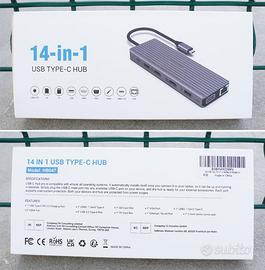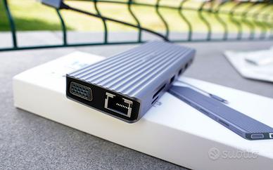 Vendo per inutilizzo questo HUB TypeC YLSCI 14in1, completo di scatola e come nuovo. La costruzione è ottima in metallo, sinceramente non occupa nemmeno troppo spazio ed al tatto restituisce un’ottima solidità. Le porte a disposizione sono molteplici, tra: VGA, x2HDMI, LAN, Jack 3,5mm, x5 USB-A, lettore SD/TF. Perfetto per qualsiasi dispositivo dotato di porta Type-C e soprattutto per MacBook Air o MacBook Pro. Per qualsiasi informazione, contattatemi.