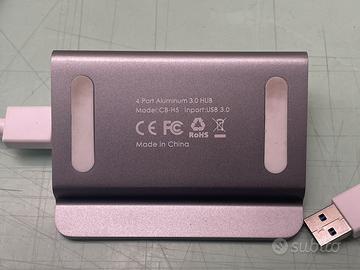 Hub usb 3 (veloce) con 4 porte Scocca in alluminio Marka Aukey