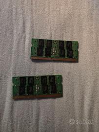 Vendo due moduli memoria RAM per PC portatile da 8 Gb l'una (totale 16 GB). Ottime condizioni, vendute in bulk. Modello HMA41GS6AFR8N-TF. Velocità di memoria: 2133 MHz. Tecnologia memoria RAM:DDR4. Fattore di forma: SO-DIMM. Voltaggio: 1,2 Volt. Tipo di bus: PC4-17000S. Layout logico: 2 Rx8 Layout fisico: double face / 260-pin. Latenza CAS: CL 15 Peso articolo100 g (x2). prezzo 45 euro ( per tute e due i moduli ) consegna a mano o spedizione in vendita anche altrove no scambi