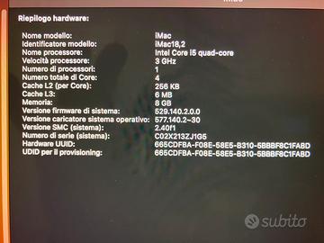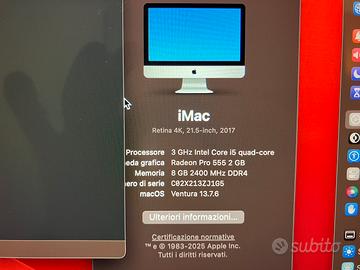 VendIMac anno 2017 da 1 TB MAC OS VENTURA. Tutte le info sul pc in questione le trovate nelle foto senza tastiera e mouse. Vendo causa inutilizzo