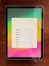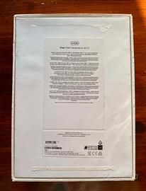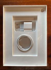 IPad ,cavo ricarica USB-C e alimentatore USB-C. Nella scatola c'è scritto un nome volutamente oscurato.