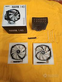 - Dissipatore NZXT HAVIK 140 completo di ventole, scatola e cavetteria. Presenti anche le 4 mollette originali NZXT per il montaggio delle ventole.