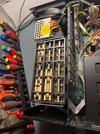 Completo di interfaccia per 5150 / 5160 cavo e manualetto. Sostituiti tutti i condensatori nell’alimentatore, accendendolo il led floppy diventa verde e gli hd girano e si posizionano senza rumori strani. Monta due dischi ad altezza piena mi sembra da 80mb cad se non erro sono ESDI. Non ho idea se funzioni o meno, non ho software. Vendo come non funzionante senza garanzia. SOLO ritiro a mano da me o con attesa su Bologna, Ferrara, Ravenna.