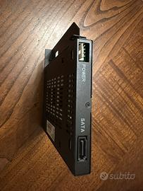 Vendo ICY DOCK ToughArmor MB411SPO-B, rack/cassetto hot-swap per installare 1 HDD/SSD da 2.5” (SATA o SAS single channel) in uno slot Slim ODD da 12,7 mm (tipo bay lettore DVD slim) oppure in bay Slim FDD. Caratteristiche principali: •Compatibile con 1x 2.5” HDD/SSD (altezza drive 5–9,5 mm) •Interfaccia host: SATA 7-pin •Alimentazione: Floppy 4-pin •Velocità supportate: SATA 3.0 fino a 6Gbps / SAS fino a 12Gbps (SAS solo con host/controller SAS compatibile) •Struttura robusta in metallo, con LED stato attività •Tray/lever con chiusura per estrazione rapida (manutenzione facilissima) Condizioni: buone, con normali segni d’uso. Incluso: quello che vedi in foto (rack + slitta/lever). Nessun disco incluso. ⚠️ Nota: non è compatibile con bay slim ODD di laptop/PC che usano backplane Slimline SATA. Consegna a mano o spedizione a carico dell’acquirente.