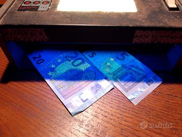 RILEVATORE di banconote false con lampada UV di ultravioletti che permette di verificare l'autenticità delle banconote di tutti i tipi. LO STRUMENTO è composto da due luci: una bianca in testa per verificare la filigrana e quella interna con luce UV. IDENTIFICA LE CARATTERISTICHE UV DELLE BANCONOTE Le banconote moderne sono dotate di caratteristiche di sicurezza specifiche visibili solo se sottoposte a una luce ultravioletta con una determinata frequenza. La lampada UV di BANDIZIOL permette di verificare se le banconote sono autentiche, false o contraffatte. Giorgio
