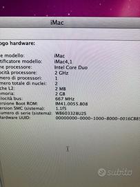 vendo iMac 20 Intel Core Duo 2 GHZ 2 giga di RAM Hard Disk 250 GB OS X 10.6.8 Snow Leopard early 2006 perfetto consegna a mano non spedisco