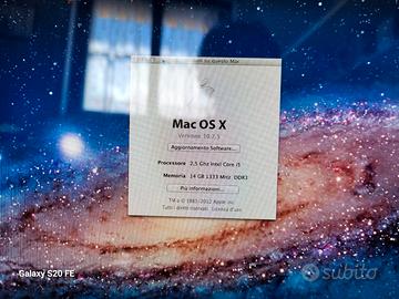 Le specifiche sono in foto, è presente un hard disk da 500gb con Mac Os Lion, è possibile aggiornarlo fino a Mac Os High Sierra. La ram da 4gb di base è stata portata a 14gb.