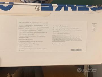 Vendo computer fisso iMac 2013, perfettamente funzionante. Unico difetto (esterno): come da foto, il fermo dello schermo è rotto, quindi serve mettere un oggetto per tenerlo dritto.
