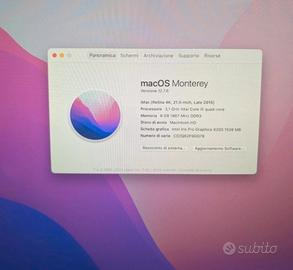 Vendo iMac 2015 in ottime condizioni, fornisco il Mac con lo scatola originale e la tastiera originale purtroppo non ho il magic mouse perché mi si è rotto, ho utilizzato da iMac per lo smart working e per la scuola la vendo per inutilizzo perché ho già un altro MacBook portatile per info, contattatemi