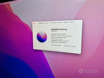 iMac (Mid 2017) [27", 5K, Retina, Intel Core i5 3,4GHz, 8GB RAM, 1TB Fusion Drive + 32GB SSD, AMD Radeon Pr0 570, macOS] argento
