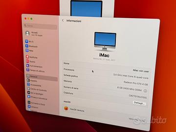 iMac (Mid 2017) [27", 5K, Retina, Intel Core i5 3,4GHz, 8GB RAM, 1TB Fusion Drive + 32GB SSD, AMD Radeon Pr0 570, macOS] argento