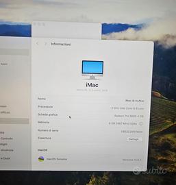 in perfette condizioni completo di scatola tastiera e mouse. iMac 21.5" display Retina 4K Processore Intel Core i5 hexa-core 3GHz 8 GB di memoria DDR4 1TB Fusion Drive scheda grafica Radeon Pro 560X 4 GB mac OS Sonoma 14.8.3