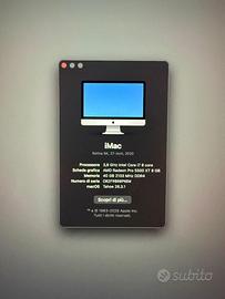 Vendo bellissimo iMac 27” del 2020. Pc veloce tutt’oggi aggiornato a Tahoe 26.3.1 Esteticamente il miglior iMac di sempre. Schermo in perfette condizioni , no ingiallimenti o ombre. Unica modifica effettuata è l’espansione di memoria da 16 a 40 Gb di Ram. (originali no ecc). Accessori originali inclusi , cavo , tastiera e mouse. Consegno a mano su Roma Sud oppure spedisco in tutta italia con imballo professionale.