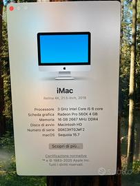 Vendo un ottimo Imac del 2019 da 512gb ssd, in ottime condizioni confezionato nella sua scatola originale assieme al magic mouse, magic keyboard e il tappetino mouse in alluminio colore argento. Cavo di ricarica tastiera e mouse incluso. Ritiro a mano. Valuto scambio con Makbook avente caratteristiche simili.