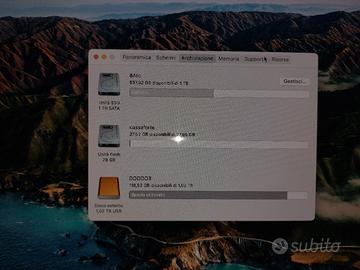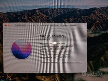 imac del 2019, le caratteristiche tecniche sono nella foto, a cui ho aumentato la RAM a 16 gb e sostituito l'hard drive con un SSD da 1 Tb, ha una piccolissima scheggia a bordo schermo impercettibile se non lo si sa, di cui comunque ho messo una foto nell'annuncio per chiarezza. Sono compresi tastiera e mouse originale con un cavetto per la ricarica, non dispongo della confezione originale, solo consegna a mano, è possibile provare il computer prima dell'acquisto ma verrà chiesta la configurazione iniziale avendolo inizializzato alle condizioni di fabbrica.