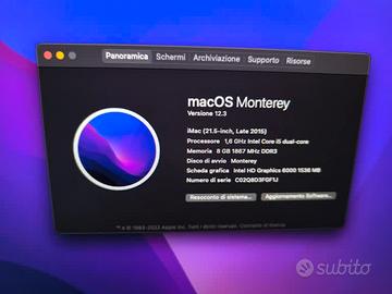 iMac 21.5 Ram 8gb Hdd 1Tb sistema preinstallato Monterey completo di tastiera e mouse originali