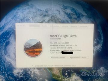 Vendo iMac (21.5-inch, Late 2009), già inizializzato con macOS High Sierra - Versione 10.13.6 Processore 5,06 GHz Intel Core 2 Duo Memoria 8 GB 1067 MHz DDR3 Monitor integrato 21,5 pollici (1920 x 1080) Scheda grafica ATI Radeon HD 4670 256 MB HD 1TB (sostituito 5 anni fa) Tastiera e mouse INCLUSI