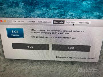 8GB (2 x 4GB) di memoria DDR3 a 1600MHz (Configurabile con 16GB).