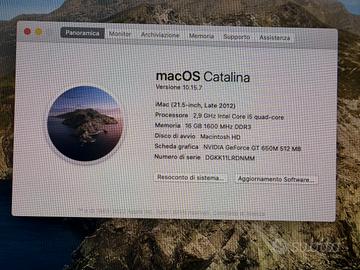 Vendo perfettamente funzionante HD 1 TB, 16 GB installati, minitor 21,5’ 1920x1080. Scheda grafica GT 650M 512 MB, con scatola.