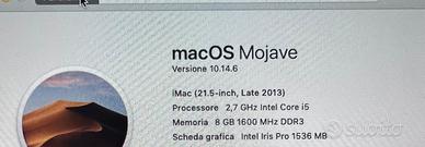 Imac 21,5 (Late 2013) Processore 2,7 ghz intel core i5 quad-core Ram 8gb 1600 mhz DDr3 Scheda grafica Intel Iris Pro 1536 mb Tastiera e mouse originali Utilizzato per uso ufficio perfette condizioni
